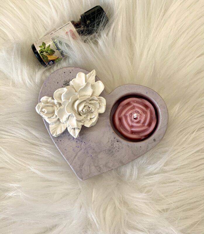 Ručne odlievaný svietnik v tvare srdca zdobený ružou na vonné oleje, spája jemnú eleganciu s praktickou funkciou aróma terapie. Kvet jemne nasáva pridanú vôňu a postupne ju uvoľňuje do priestoru. Svietnik je určený na jednu čajovú sviečku, ktorá vytvára tlmené svetlo a dokresľuje atmosféru pokoja a pohody. Ruža symbolizuje lásku, harmóniu a krásu, a spolu s vôňou premieňa domov na miesto, kde sa spája dekorácia, symbolika a príjemná voňavá atmosféra.