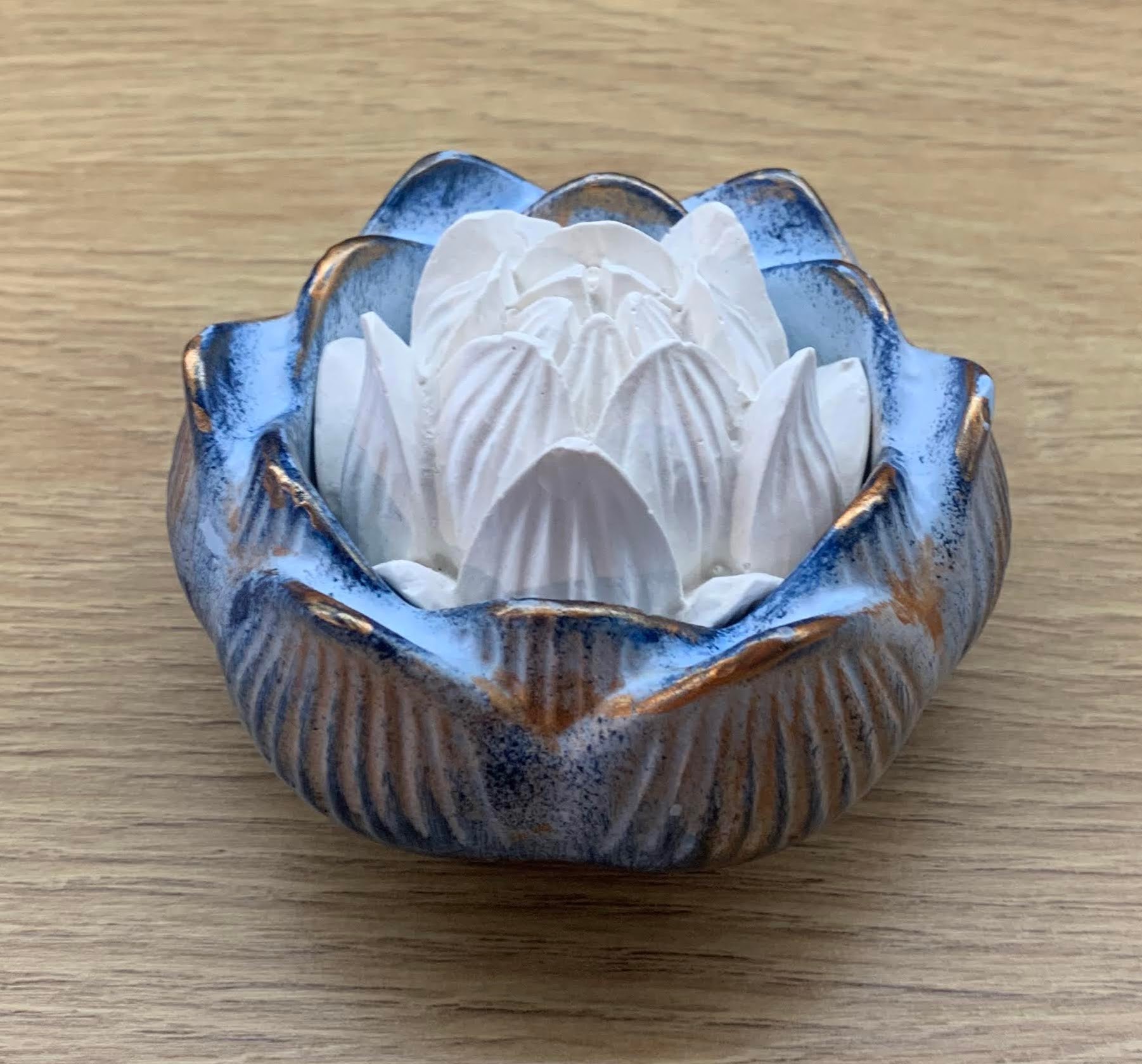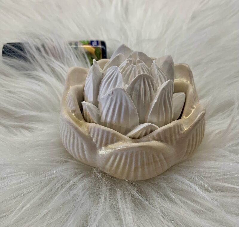 Prineste do svojho domova harmóniu a pokoj. Tento ručne vyrobený difuzér v tvare lotosu šíri jemnú vôňu podľa vašej voľby a zároveň symbolizuje čistotu, rovnováhu a nové začiatky. Elegantný doplnok, ktorý okrem krásy vytvára aj príjemnú, relaxačnú atmosféru v každej miestnosti.